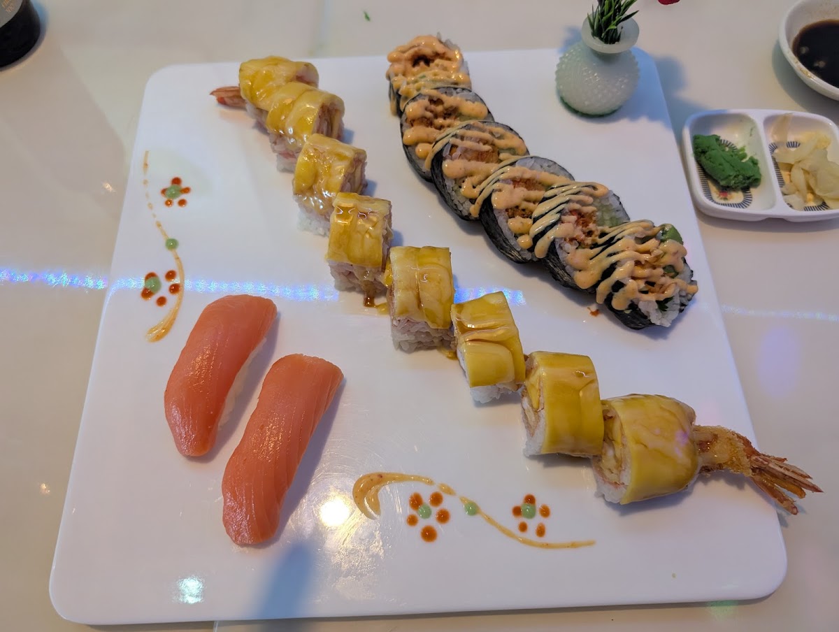 The sushi menu is extensive and inventive, featuring rolls like the Volcano Roll, Rainbow Roll, and some more playful creations such as the American Dream Roll and Mr. James Roll, which locals seem to favor. There’s a good mix of classic options alongside rolls that experiment with added ingredients like cream cheese and jalapeños, some fried for extra texture. For lighter or more traditional Japanese tastes, their Onion Soup gets positive mentions, a detail that stands out since not all sushi places offer it. Hibachi lunch specials provide straightforward protein options like chicken, steak, and salmon grilled with soy-based teriyaki glaze—a solid go-to when you want something warm and filling without waiting too long.