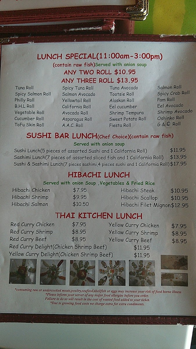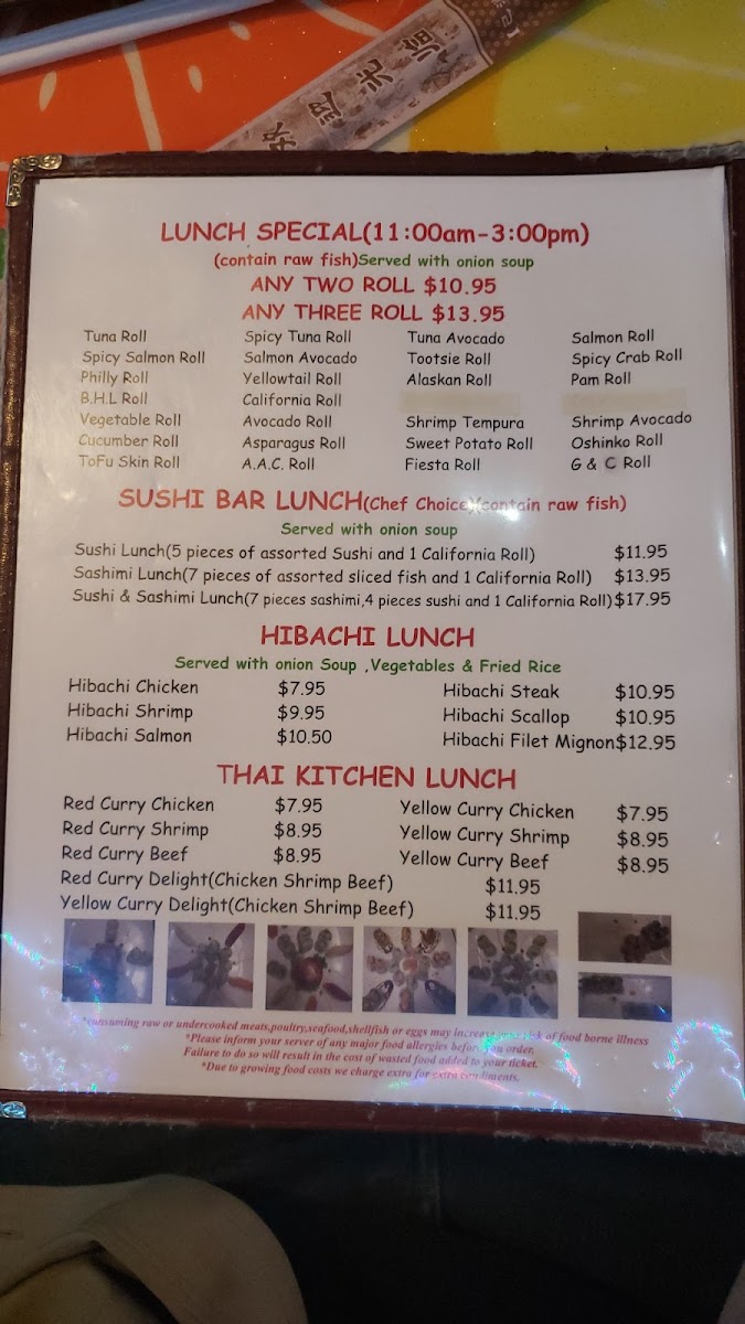 The menu suits a range of dining occasions from quick sushi orders to casual sit-down meals featuring hibachi-prepared entrees. Guests often combine items from different sections, making it flexible for varied preferences and meal sizes.